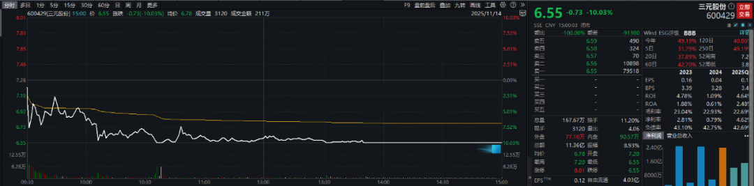 因奶皮子糖葫芦的火爆而斩获四连板的三元股份(600429),今日盘中持续低位震荡,午后被按死跌停南京开户配资,最终报收于6.55元/股,卖一位置积压近8万手卖单等待出逃。