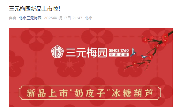 此前,三元股份的连续涨停,被市场解读与其全资子公司三元梅园推出的奶皮子糖葫芦有关。