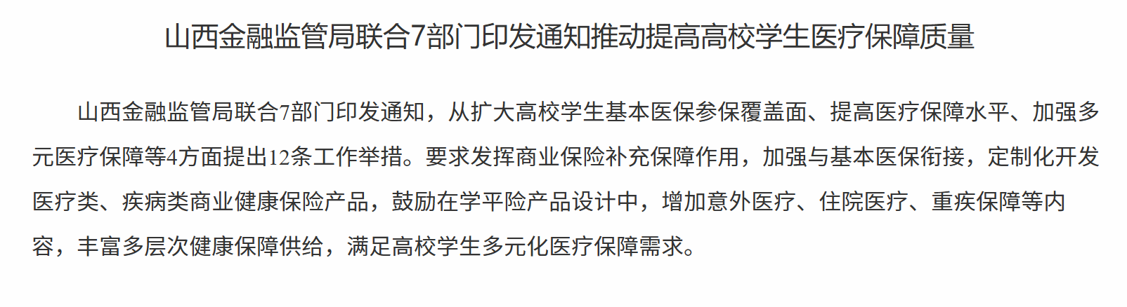 11月11日,山西金融监管局联合7部门印发通知,从扩大高校学生基本医保参保覆盖面、提高医疗保障水平、加强多元医疗保障等4方面提出12条工作举措。要求发挥商业保险补充保障作用中国股票配资网官方网站,加强与基本医保衔接,定制化开发医疗类、疾病类商业健康保险产品,鼓励在学平险产品设计中,增加意外医疗、住院医疗、重疾保障等内容,丰富多层次健康保障供给,满足高校学生多元化医疗保障需求。