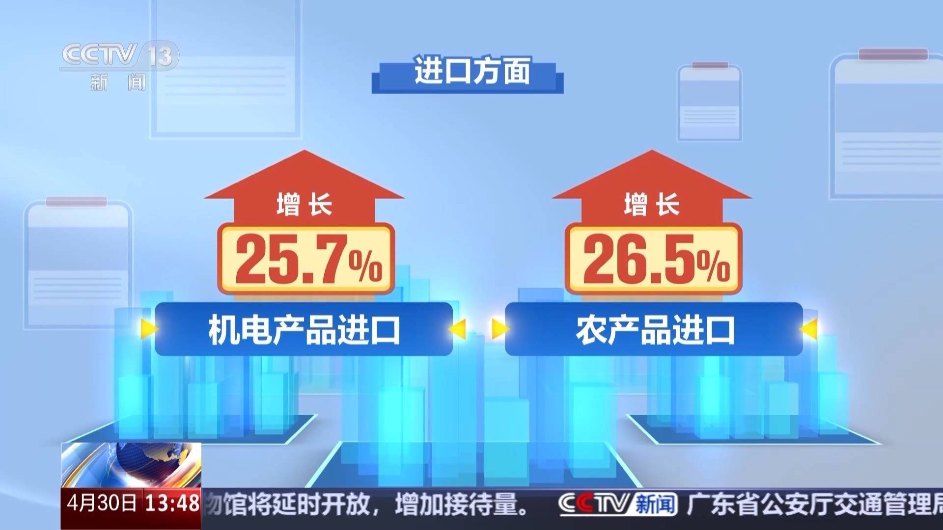 从进出口主要商品看,西部地区机电产品出口占比超七成,“新三样”产品表现亮眼,出口增长58.9%。进口方面,机电产品和农产品进口分别增长25.7%、26.5%。