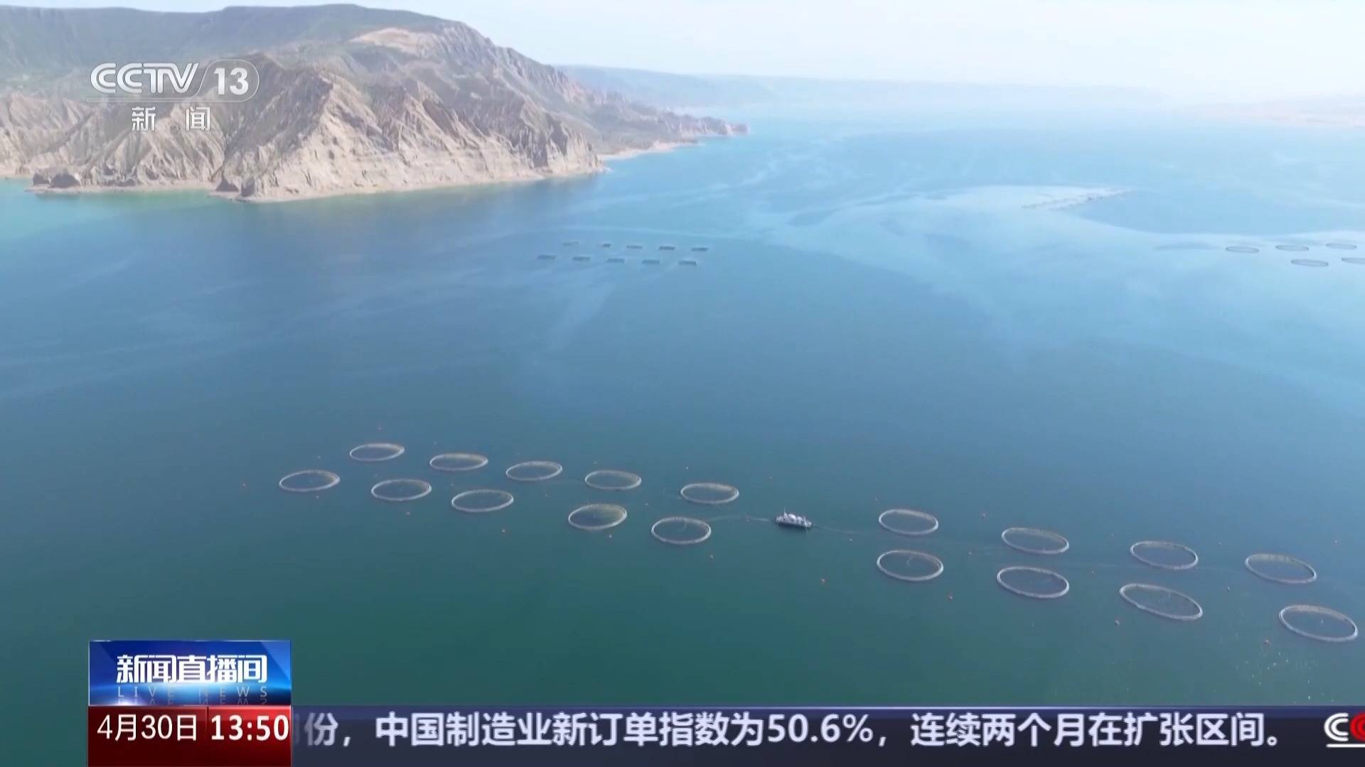 rr总台央视记者 孔令雯:群山怀抱的龙羊峡水库海拔2600米,位于黄河上游,来自冰川、雪山的融水,全年平均水温稳定在12℃左右,并且常年不封冻,养殖区平均水深120米,优渥的环境条件让这里出产的虹鳟鱼品质出众,现在这个季节每天有50吨左右的虹鳟鱼从这里出发,送往国内外消费者的餐桌。