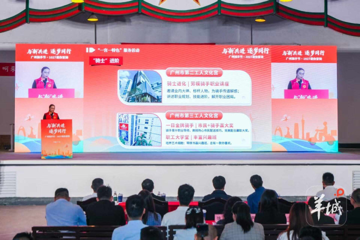 “1027”,音译“邀你爱骑”。本届“骑手节”紧扣“与‘新’共进,逐梦同行”主题,主要展现广州市网约配送行业工会联合会与“新业态”同行,与外卖配送行业共同发展的崭新进程。活动现场,主办方正式发布六条“爱骑”举措,让服务精准触达每位骑手: